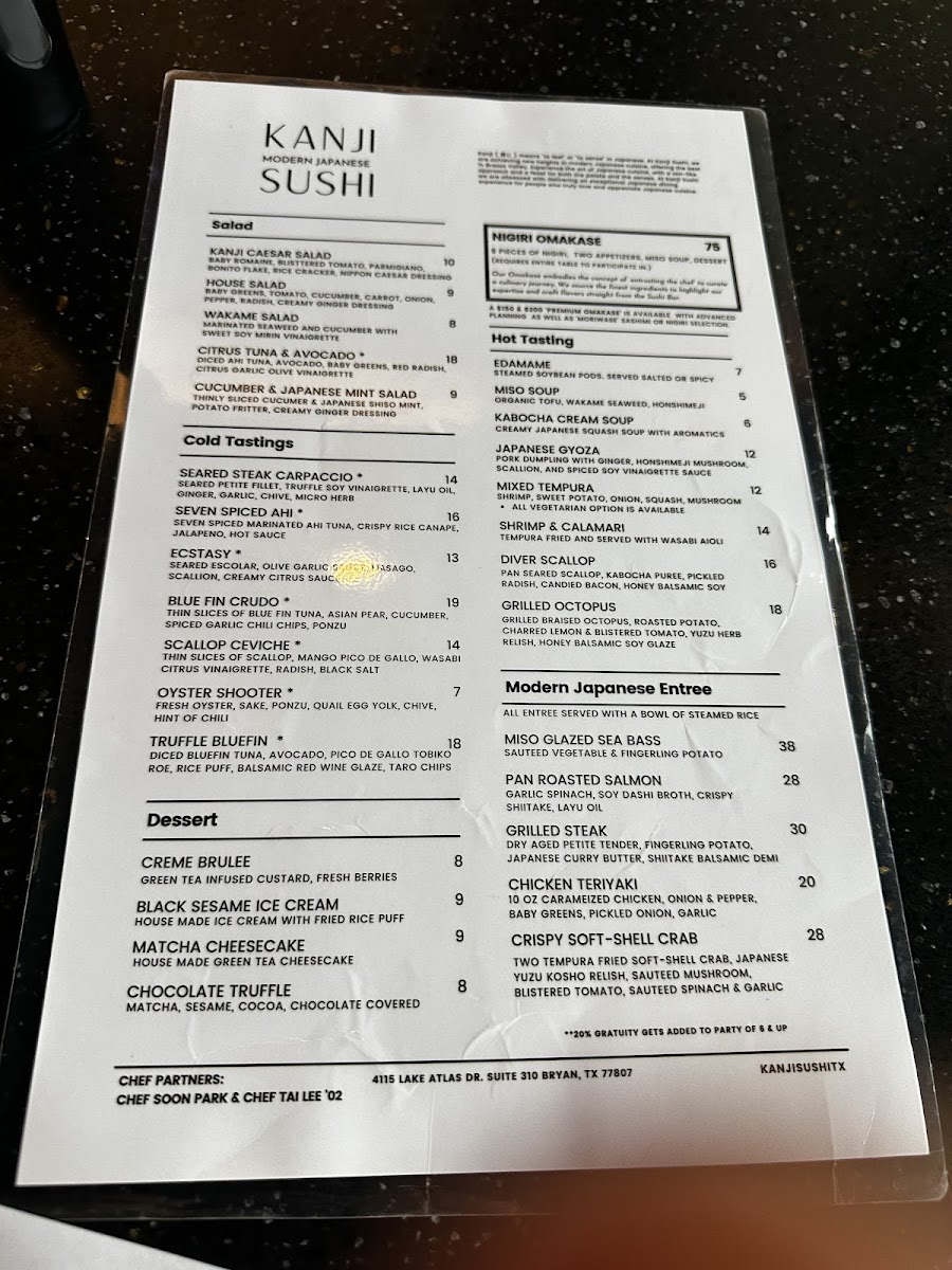 9 PIECES OF NIGIRI, TWO APPETIZERS, MISO SOUP, DESSERT (REQUIRES ENTIRE TABLE TO PARTICIPATE IN.) Our Omakase embodies the concept of ‘entrusting the chef’ to curate a culinary journey. We source the finest ingredients to highlight our expertise and craft flavors straight from the Sushi Bar. A $150 & $200 ‘PREMIUM OMAKASE’ IS AVAILABLE WITH ADVANCED PLANNING AS WELL AS 'MORIWASE' SASHIMI OR NIGIRI SELECTION.
