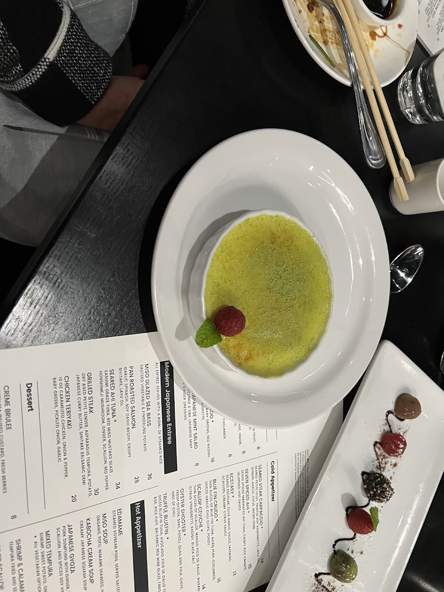 GREEN TEA INFUSED CUSTARD, FRESH BERRIES
